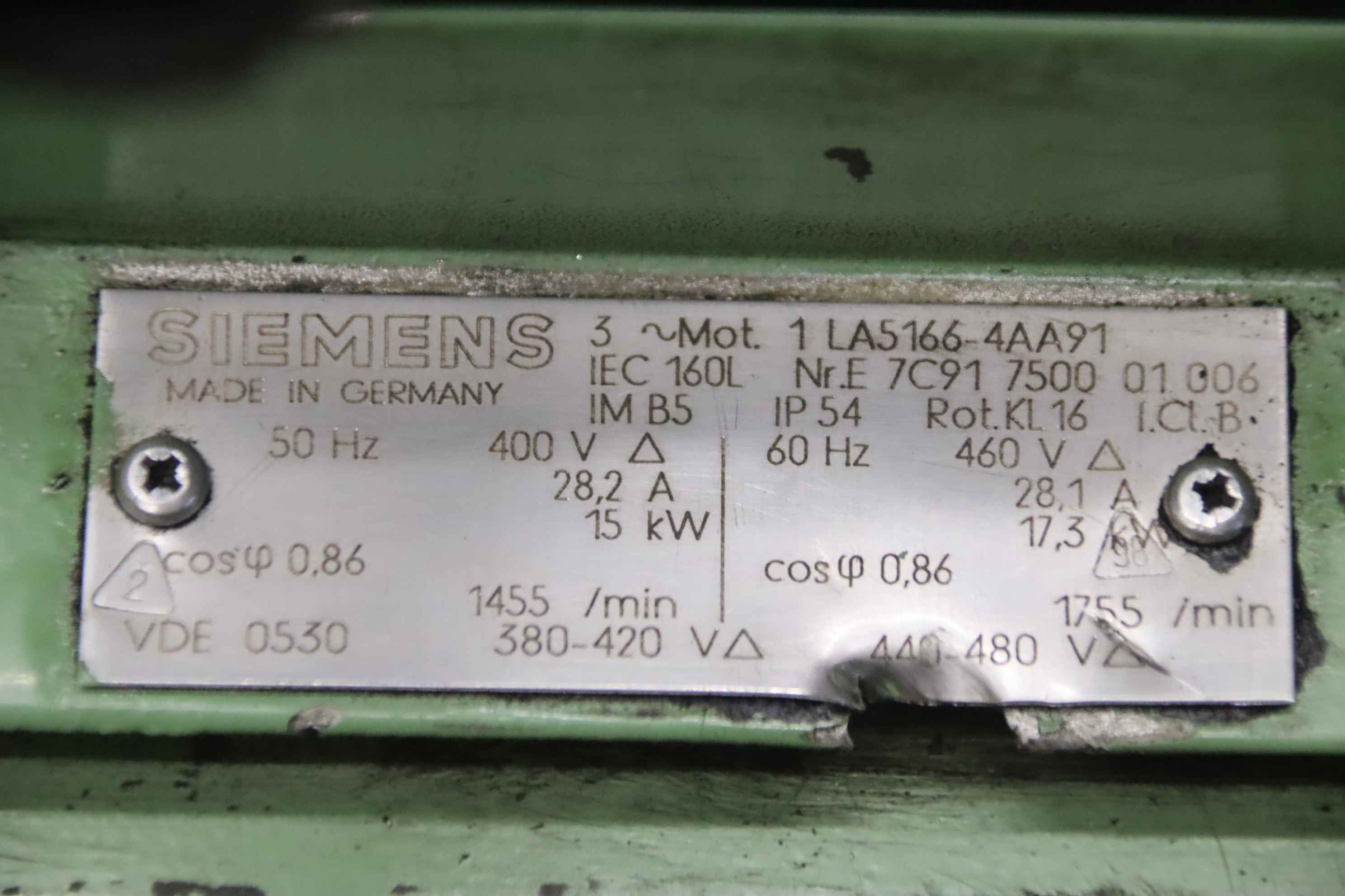 -Manufacturer: Siemens, electric motor type 1 LA5166-4AA91