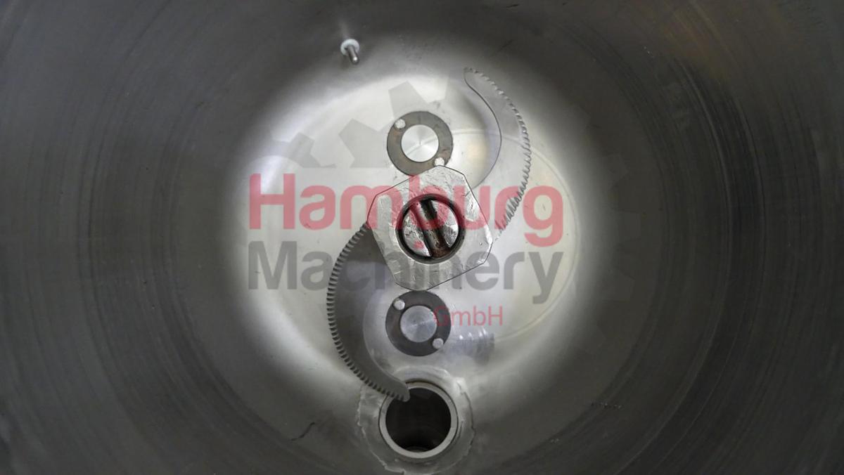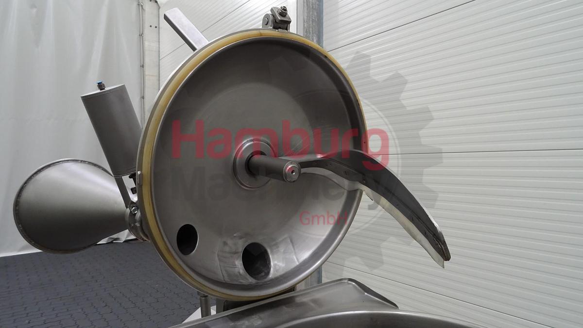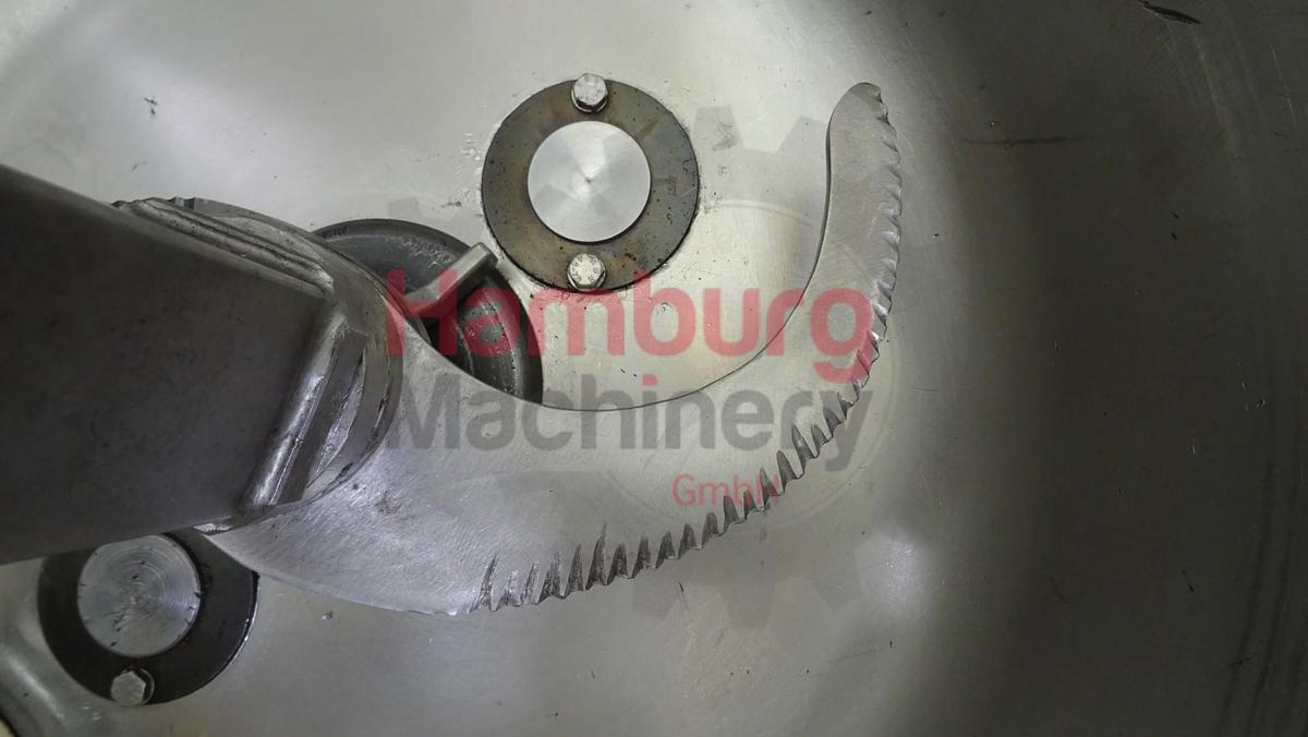 Stephan UM/SK 60 E Universal Machine for the production of processed cheese, convenience products, vegan spreads and confectionery. Mounted on a stainless steel frame. The bowl is equiped with a double jacket for heating/cooling on the jacket, 2x direct steam injection nozzles for direct injection of (culinair) steam inside the product, temperature sensor inside the product, cutting blade, maximum working pressure in the bowl -1/- bar (protected with overpressure valve), maximum temperature in the bowl 95 °C, maximum temperature in the jacket 95 °C, vacuum connection on the bowl, dearation connection on the bowl, infeed connection on the lid with a hopper with a pneumatic valve for adding powders, mounted on the lid a scraper agitator for the wall, electric driven (0,37 kW - n2: 39 rpm), 1 manual tightening clamp, pneumatic outfeed valve for the product, so not needed to tilt the bowl for empyting. Main motor for the cutting knife: 5,5 / 7,5 kW - 380 V - 13 / 17 A - 1.415 / 2.880 rpm - 50 Hz - 3 Ph. Original stainless steel Stephan main control panel with relay controls and buttons. Vacuumpump (Sihi, Lema 26 AZ, 2010, 2900 rpm, 33 mbar, 27 m3/h, 0,75 kW). Manual and spare parts list available in German language., Type of Machine: Universal machine, Volume: 60 liter, Batch size: 40 liter batch max, Capacity: ± 200 kg/h, Motor: 5,5 / 7,5kW - 380 V 1.415 / 2.880 rpm - 50 Hz, Operating temperature: 95 °C, Dimensions: 180 x 70 x 160 cm, Weight: 300 kg
