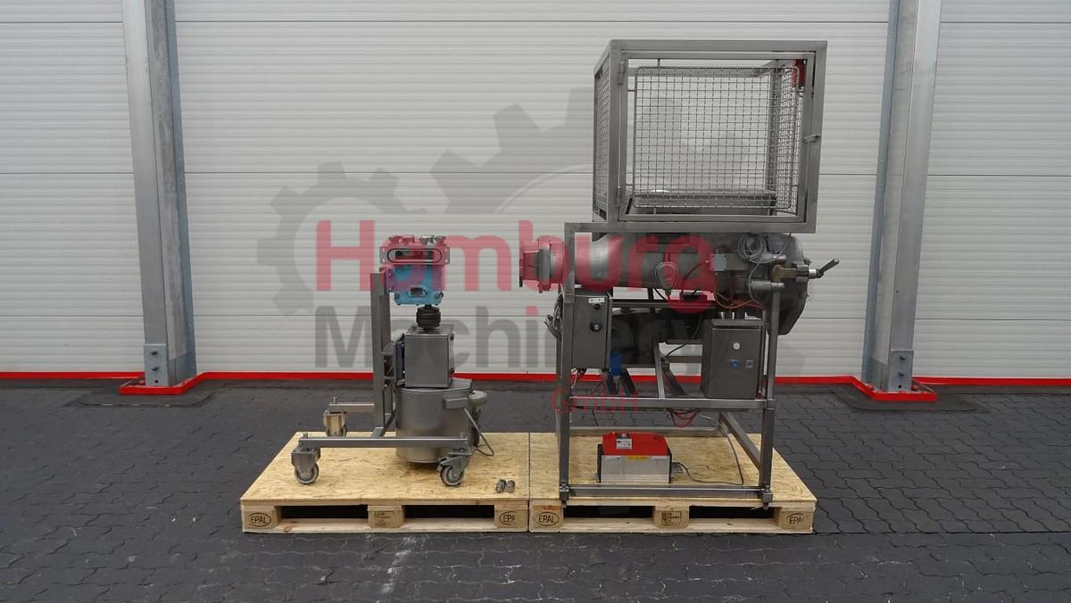 Cortadora de vacío Kramer+Grebe VSM 200 Fabricante Alemania Año de producción Reacondicionado Datos técnicos dimensiones totales 2800x2300x1700 mm; tazón 200 ltr; 3 cuchillos velocidades 1000/1500/3000 rpm; 2 velocidades de tazón; 2 velocidades de mezcla; cargador hidráulico; descargador hidráulico; 6 cuchillos; fuente de alimentación 400 V, 50 Hz; poder: motor principal 26/48/85 kW, motor de cuenco 2,6/5,1 kW, motor de mezcla 3,2/4,1 kW; motor descargador 1,1 kW, sistema hidráulico 2,2 kW, bomba de vacío Busch 250 m3, 5,5 kW.