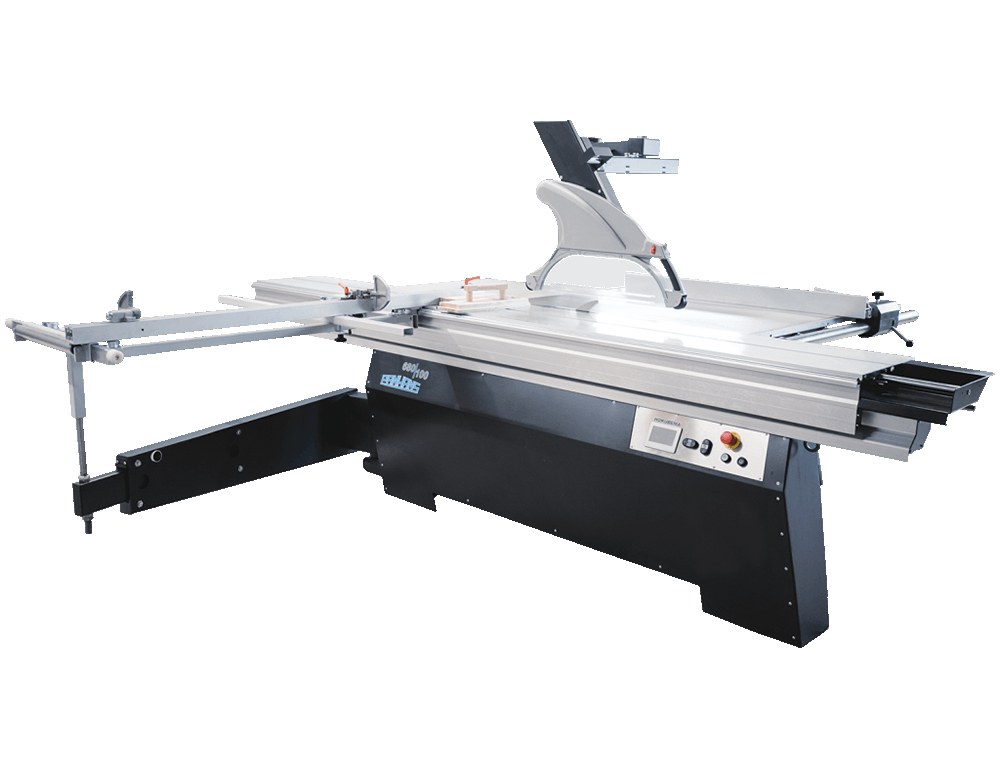 Sliding table saw Brand: Panhans Type: 680 100 New machine Technical data: Trolley length 3200 mm Cutting length 3400 mm Cutting height max. 155 mm at 90 ° 105 mm at 46 ° Cut width Width stop 1030 mm Saw blade max. Ø 450 mm Saw blade under table retractable Ø 400 mm Table size cast table top 1200 x 655 mm Table extension plus. 750 x 655 mm Table extension 1200 x 655 mm Table height +/- 20 mm 900 mm Main saw blade speed 3000/4000/5000/6000 rpm Net weight approx. 1051 kg Technical description: Solid German mechanical engineering For trimming, cutting to length, formatting, miter cutting, etc. Dimensionally stable and self-supporting machine body manufactured as a stable frame welded construction from thick-walled steel profiles, laser-processed sheet steel parts and mechanically processed The torsion-resistant and finely planed cast table top is built on the ...