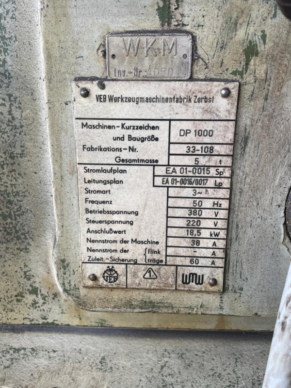 faceplate diameter: 1000 mmmax. torque on the spindle: 900 total power requirement: 17 kWweight of the machine ca.: 6,1 tdimensions of the machine ca.: mA vertical turning lathe with a fixed cross railThe data for this ad was created with ModulMWS - the software solution of LogoTech ...