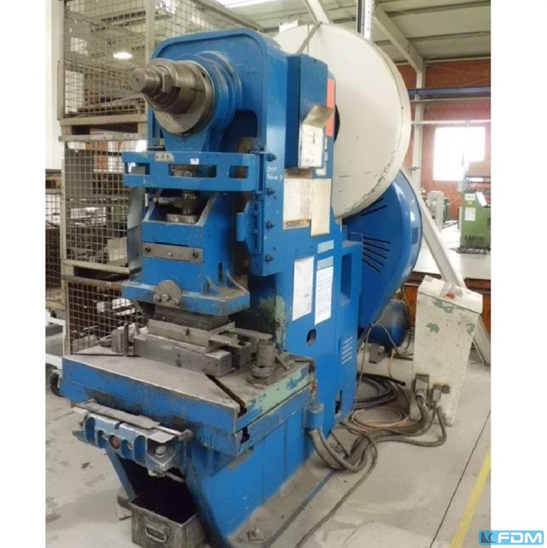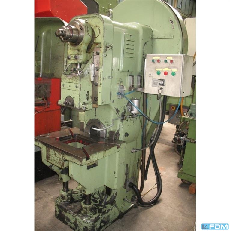 Prensa excéntrica usada del tipo VSS LE 250 C. Año de fabricación 1979. Renovación general 2016 Especificaciones: Fuerza nominal de modelado 250 T Dimensiones del escritorio: 1120 x 800 mm Carrera máxima del deslizador 30 mm Tamaños de deslizadores 800 x 475 mm Ajuste deslizante de 110 mm Altura de la abrazadera: 360 mm Potencia del motor principal 20 kW Dimensiones: L x An x H 1350 mm x 2550 x 2915 mm Peso de la máquina: 12880 kg