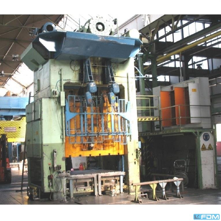Fuerza de prensado: 3150 kN, dimensiones de la mesa X/Y: 2500 mm/1600 mm, carrera (fija): 280 mm, velocidad de carrera: 20-80 carreras/min, peso: aprox. 68000 kg. Incluye línea de transferencia y alimentación Dreher. El sistema de control está defectuoso. Documentación disponible. Es posible realizar una inspección in situ.