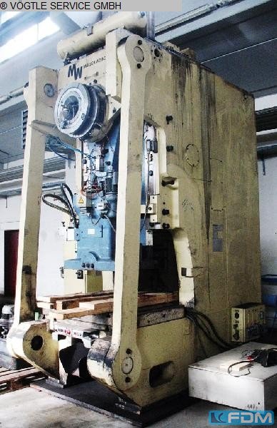 (1970) 200t Müller-Weingarten Eccentric Press Prensa excéntrica de alta resistencia para conformado industrial de alta capacidad Esta potente prensa mecánica de 1970 está diseñada para la metalugería de calibre pesado, ofreciendo una capacidad de prensado significativa de 200 toneladas y un grosor máximo de lámina de 28 mm. Detalles técnicos Tipo de máquina: Prensa excéntrica Fabricante: Müller-Weingarten Modelo: AR 200 Año de fabricación: 1970 Fuerza nominal: 200t Grosor máximo: 28 mm Ritmo de brazada: 32 golpes/min Carrera del ariete: 40 – 180 mm Ajuste de la RAM: 110 mm