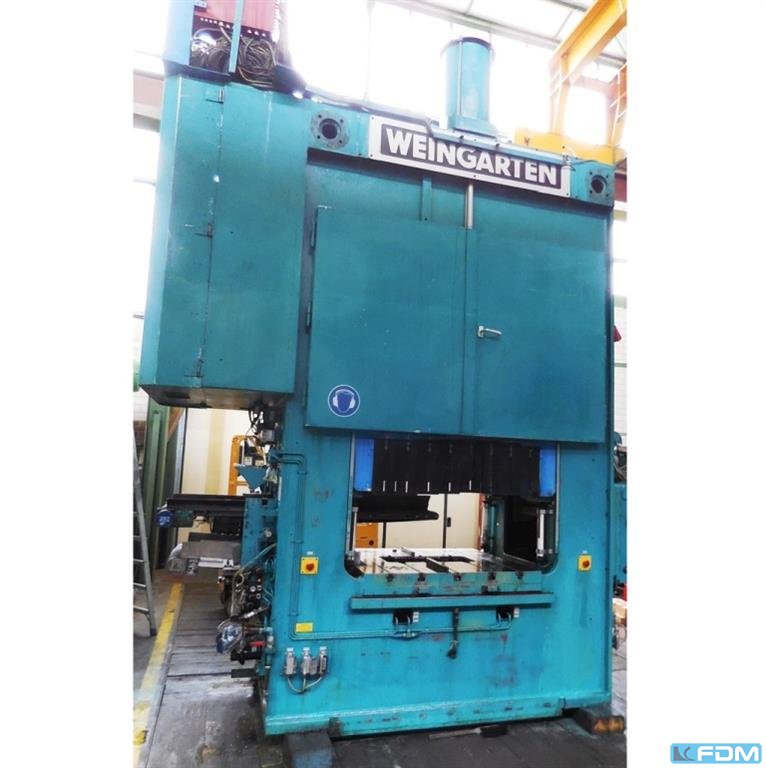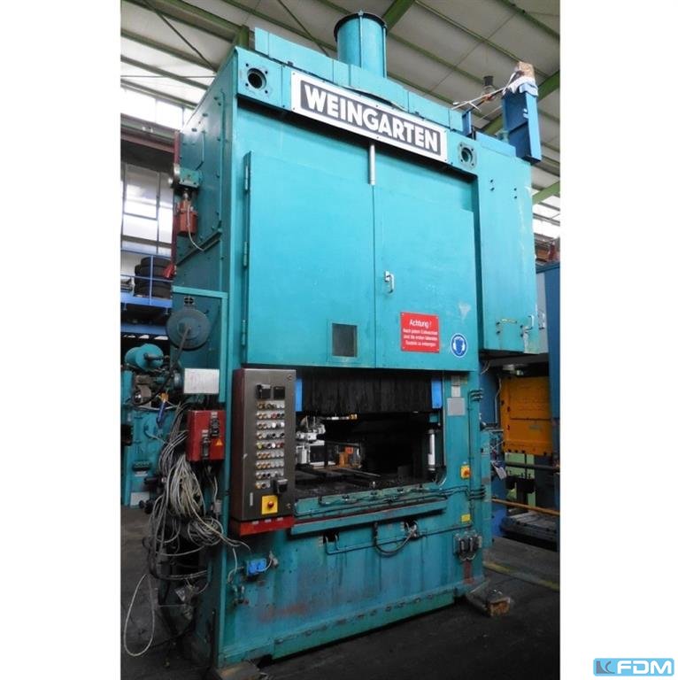 La prensa WEINGARTEN DE 200-20 construida en 1975 en Alemania se utiliza para el mecanizado de piezas de precisión. La construcción rígida combinada con una alta fuerza de prensado de 200 toneladas hacen de la máquina la solución perfecta para la producción en masa de varios tipos de piezas. El proceso de prensado de precisión de chapa puede automatizarse por completo cuando la prensa WEINGARTEN se equipa con un alimentador de chapa. Especificaciones técnicas de la prensa WEINGARTEN DE200-20 200 t - Fuerza de prensado: 200 t - Carrera máxima de la corredera: 200 mm - Carrera mínima de la corredera: 15 mm - Número máximo de golpes del deslizador: 60/min - Número mínimo de golpes del deslizador: 20/min - Ajuste del deslizador: 110 mm