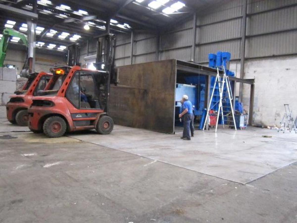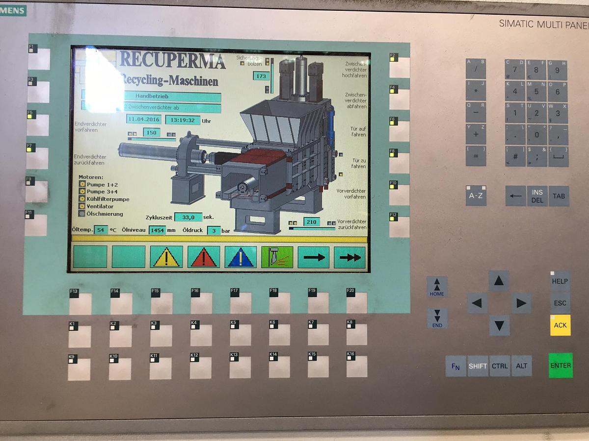 3. Compactación – Compactación final: 3,400 kN, Fuerza del cilindro de la puerta: 600 kN, Carcasa de prensa de apertura de alimentación (L×W): 1,950 × 1,420 mm, Grado de compactación: aprox. 44 %, horas de funcionamiento: 17,400 h