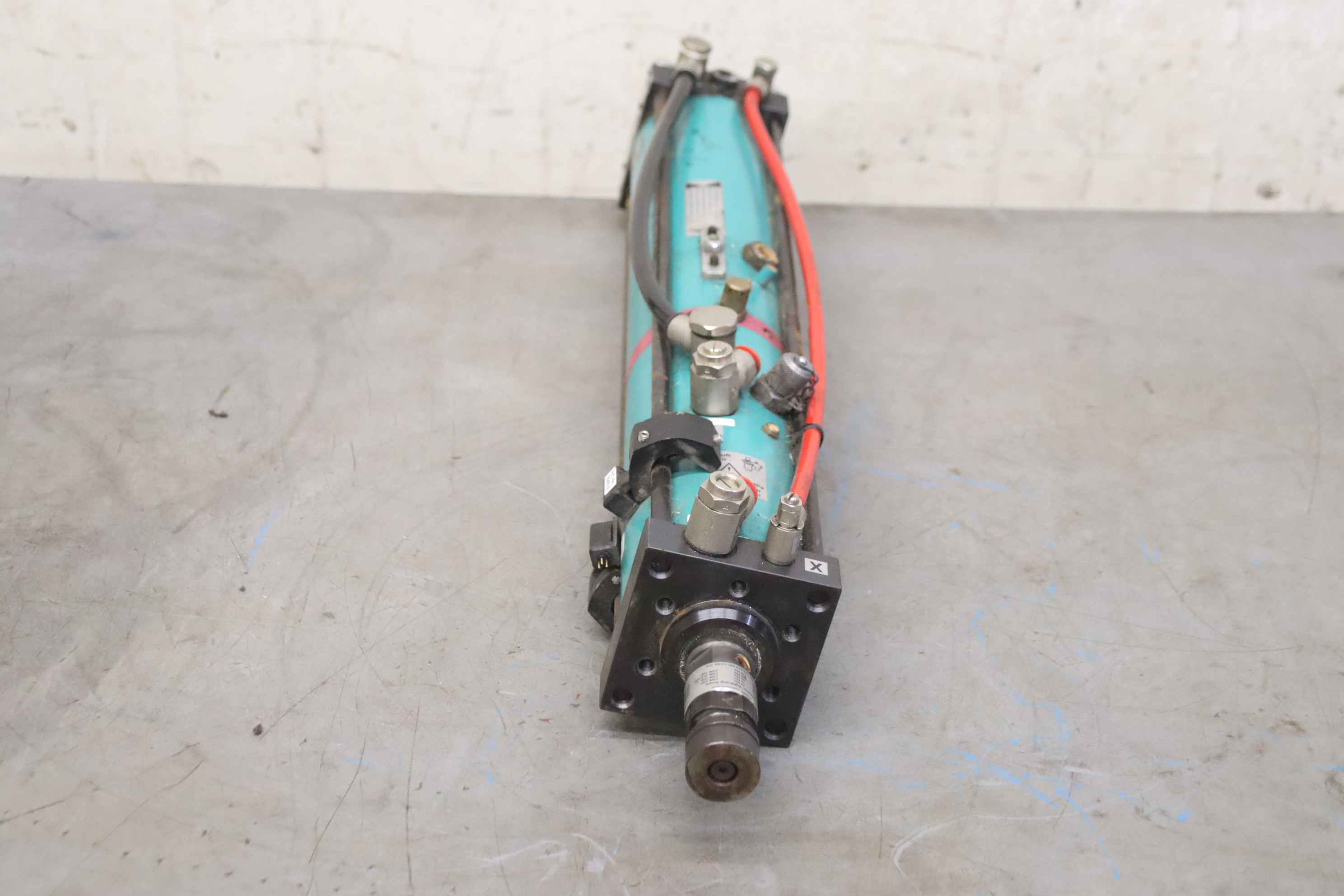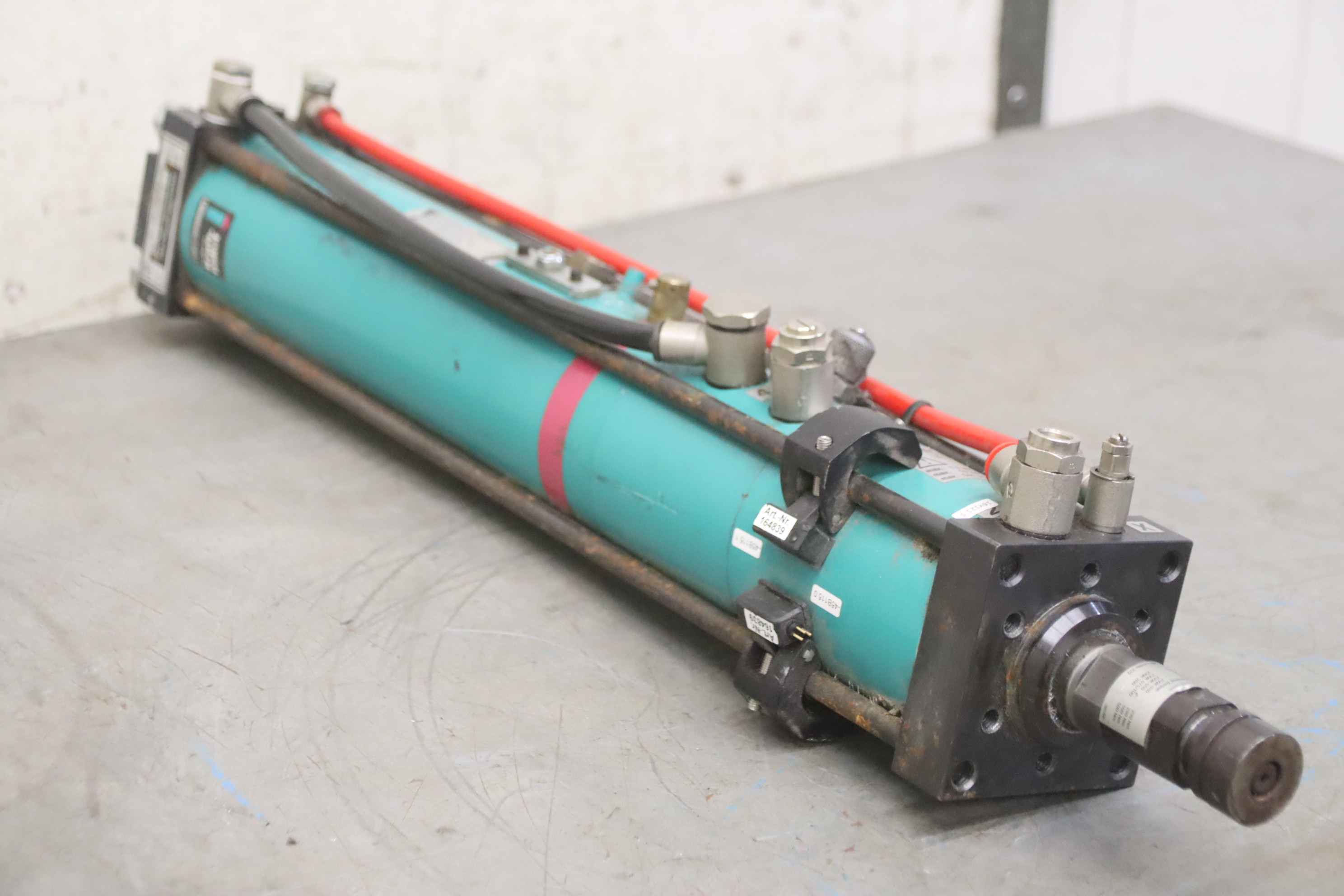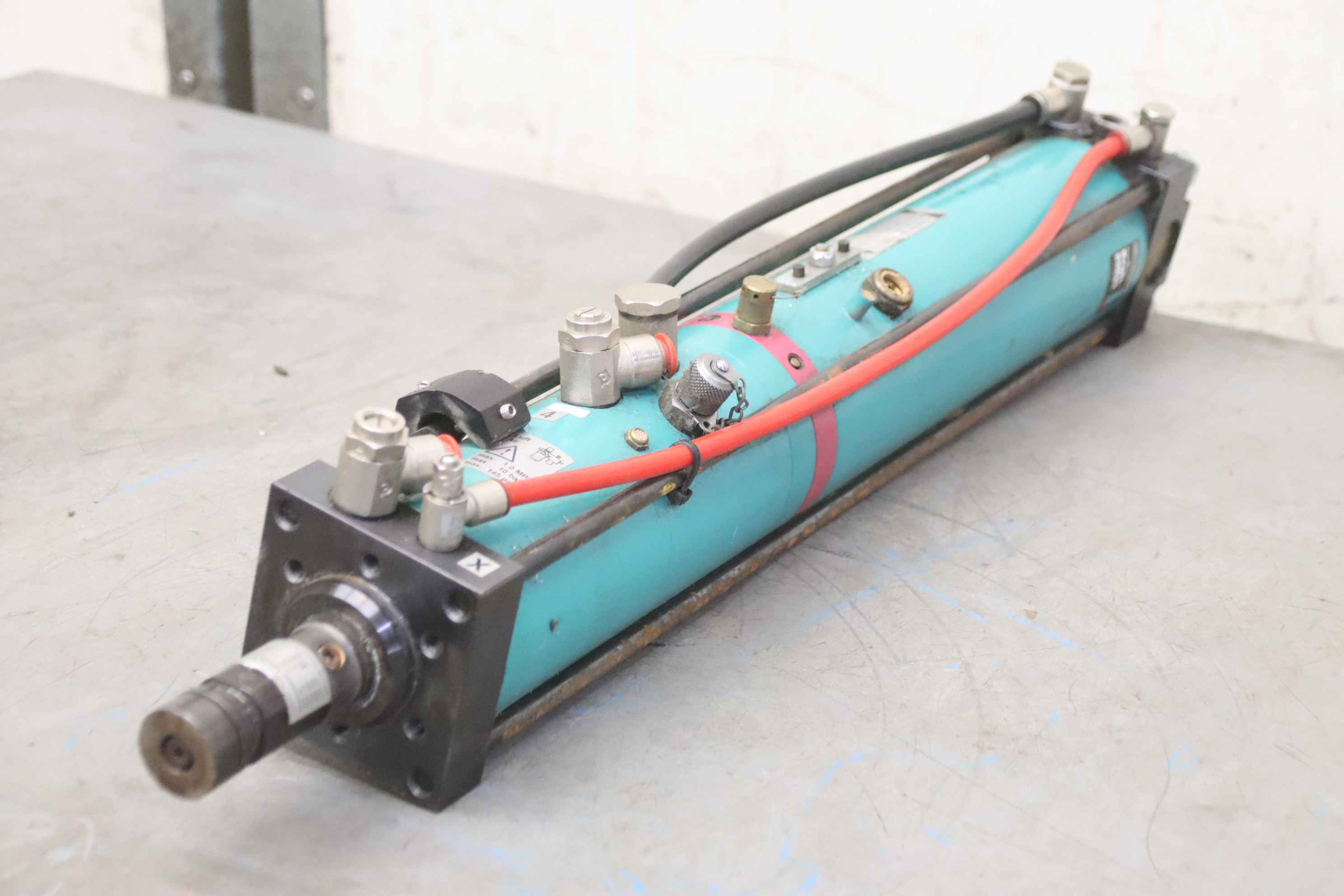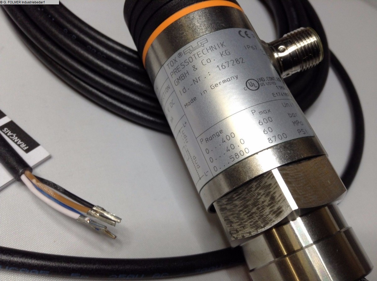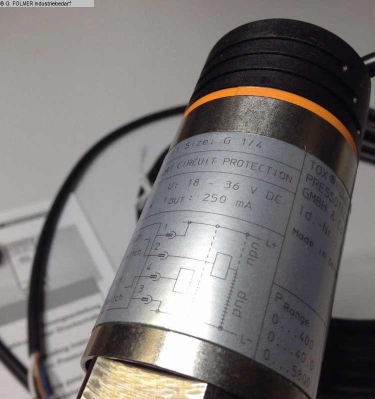 Cilindro neumohidráulico TOX PressotechnikPrensa hidroneumática, unidad de potenciaTipo: S 04.00.050.12 DFabr. N.º de artículo: 208696.460 Año de construcción aprox. 2000Capacidad de impresión: 4.0 ton. a 10 barCapacidad de presión: 3,0 ton. a 8 barCapacidad de presión: 2,6 ton. a 7 barCapacidad de presión: 2,4 ton. a 6 barCapacidad de presión: 2,0 ton. a 5 barCapacidad de presión: 1,6 ton. a 4 barCapacidad de presión: 1,2 ton. a 3 barCarrera total: 50 mmCarrera de potencia: 12 mmVástago del pistón: 30 mmVástago del pistón de montaje roscado: M22 x 2 mmRequisito de aire comprimido: 3 a 10 bar- electrónico