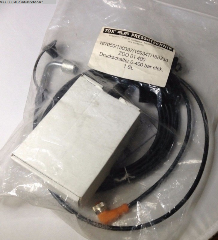 Unidad de cierre TOX - Prensa neumática-hidro ToxPrensa hidroneumática TOX Pressotechnik POWER PACKAGETipo tipo CRS 03.62Nº: 207599.2Año de construcción aprox. 2005Capacidad de presión: máx. 80 kN = 8 toneladasProyección: 20 mmAltura de instalación: 32 mm- Herramienta de cierre incorporada- Válvula neumática para el control- Unión o clinchado a presión- Para realizar una conexión ajustada a la forma de 2 hojas sin perforar ni calentar las hojas- Montado en el soporte- con el control eléctrico más simple y Interruptor de piePeso: 230 kgProviene de