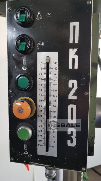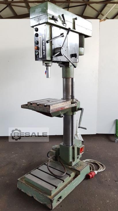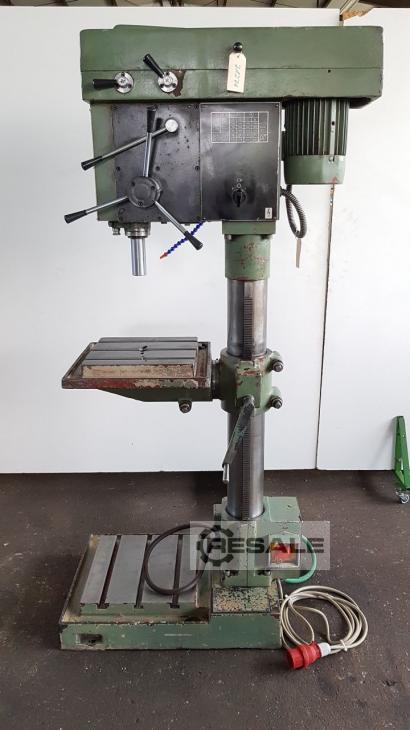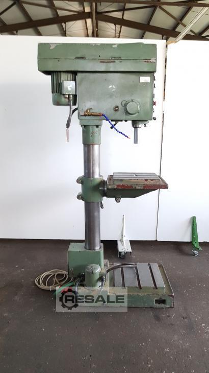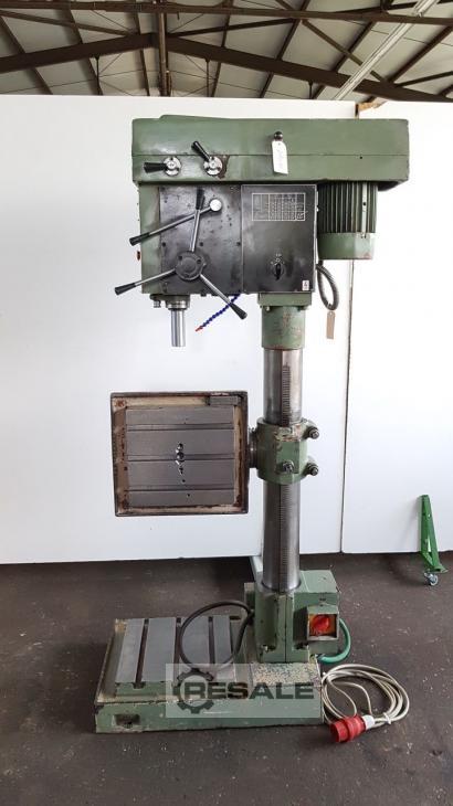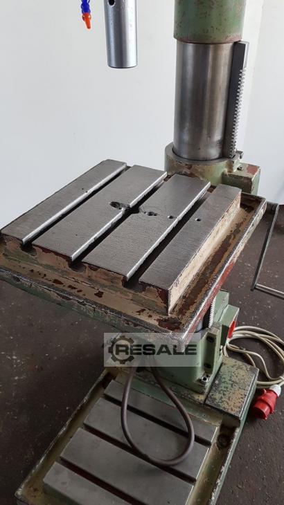 Oferta 23380 Características técnicas: - Capacidad de taladrado en acero ST 60 30 mm - Soporte de husillo de perforación MK 3 - 4 avances: 0,1 - 0,16 - 0,25 - 0,4 mm/rev - Velocidades del husillo de perforación en etapas de engranajes 95 - 2000 rpm - Carrera del husillo de taladrado 160 mm - Proyección 350 mm - Mesa con 3 ranuras en T ajustables en altura 340 x 320 mm - La mesa se puede inclinar hacia la izquierda + hacia la derecha -Máximo. Tabla de distancias – husillo de taladrado 500 mm - Distancia máxima de la placa base mecanizada – husillo de perforación 1050 mm - Diámetro de la columna 160 mm -Iluminación - Accionamiento 400 V / 2,4 kW - Necesidad de espacio aprox. 600 x 1950 x 800 mm - Peso aprox. 350 kg